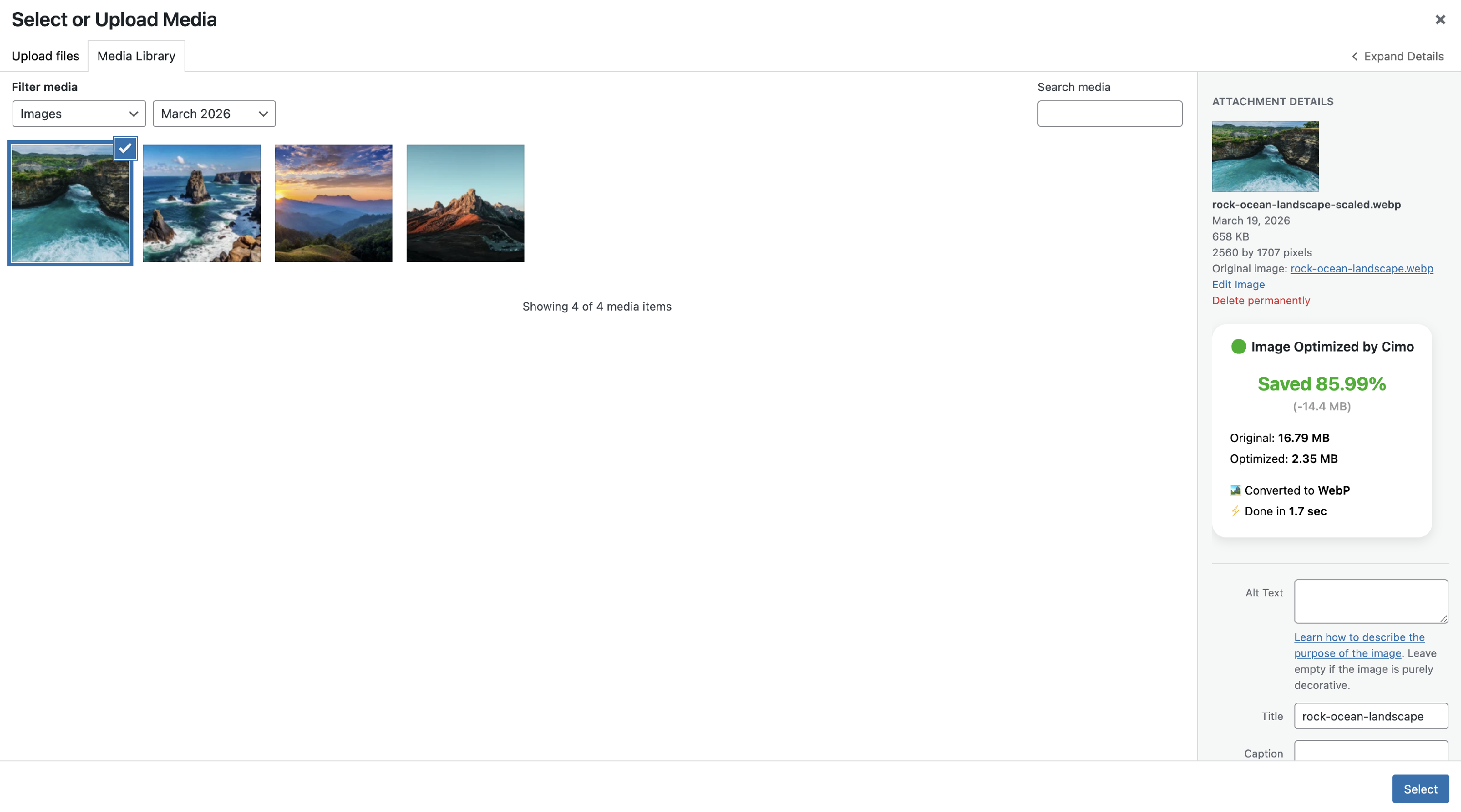 - Optimization statistics boxes in the Media Manager and Media Library