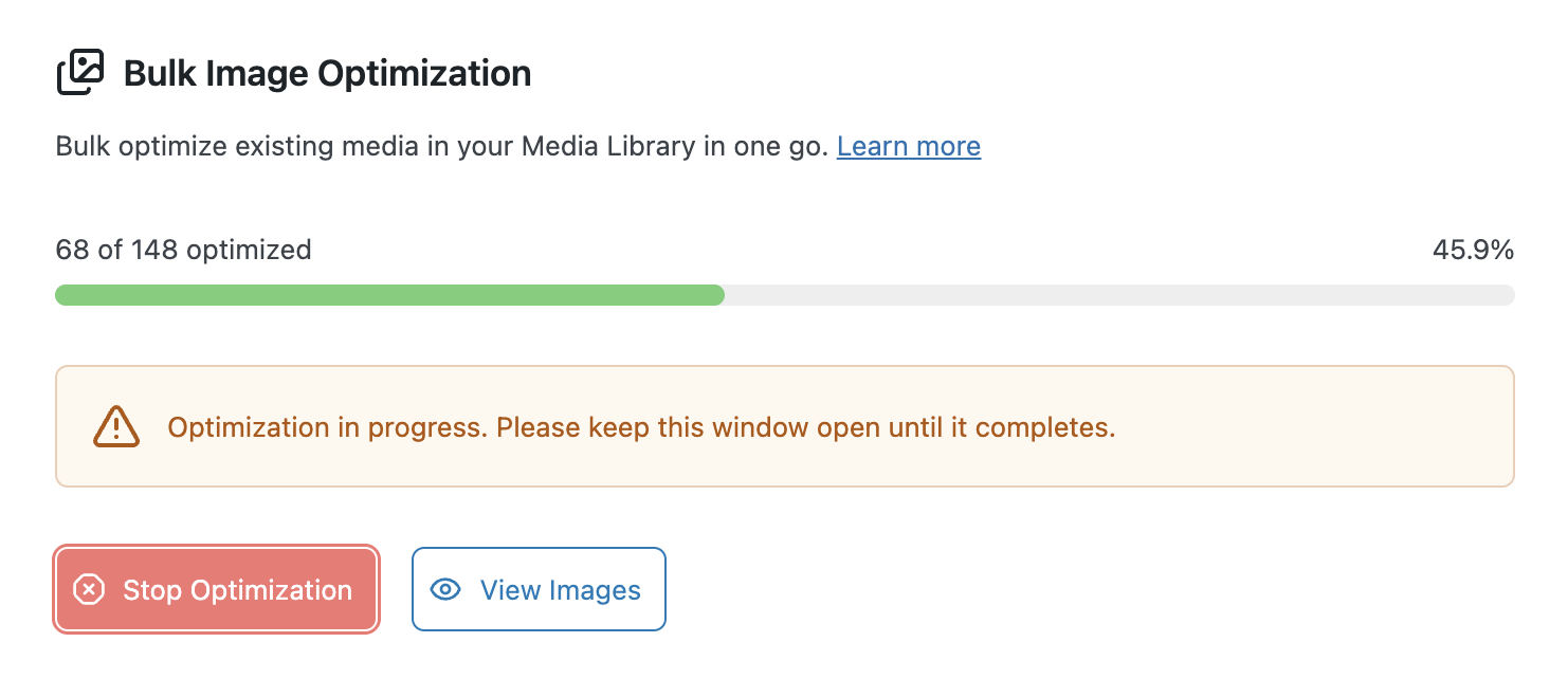 Bulk Optimization helps you optimize all your existing images in your Media Library in one go.